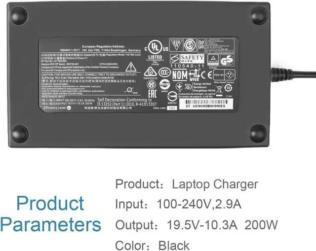 Compatibility: Charger 19.5V 10.3A 200W TPN-CA03 928429-002 835888-001 A200A012L N3T70AV HSTNN-C86C L00818-850 TPN-DA10