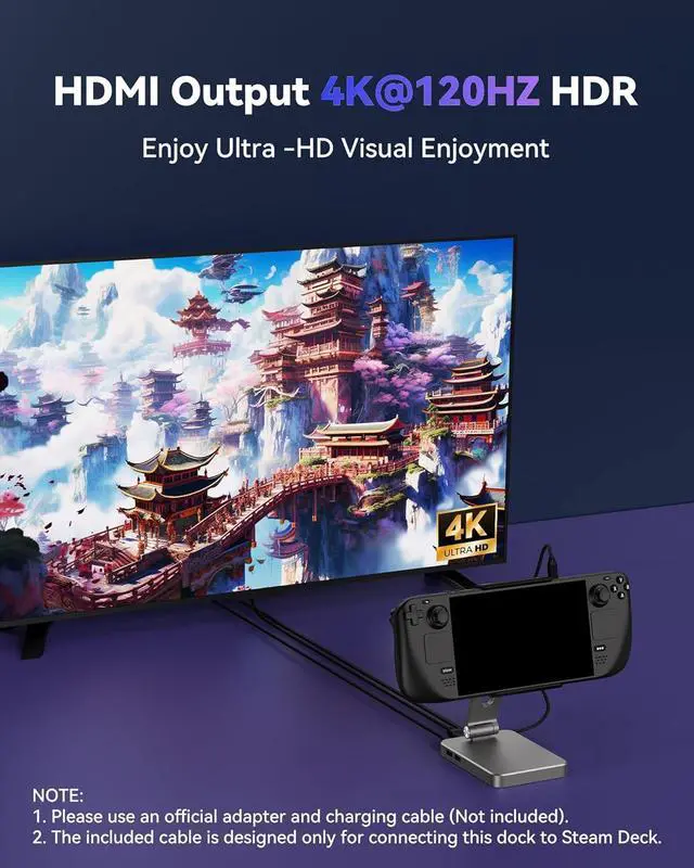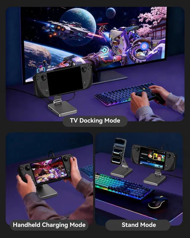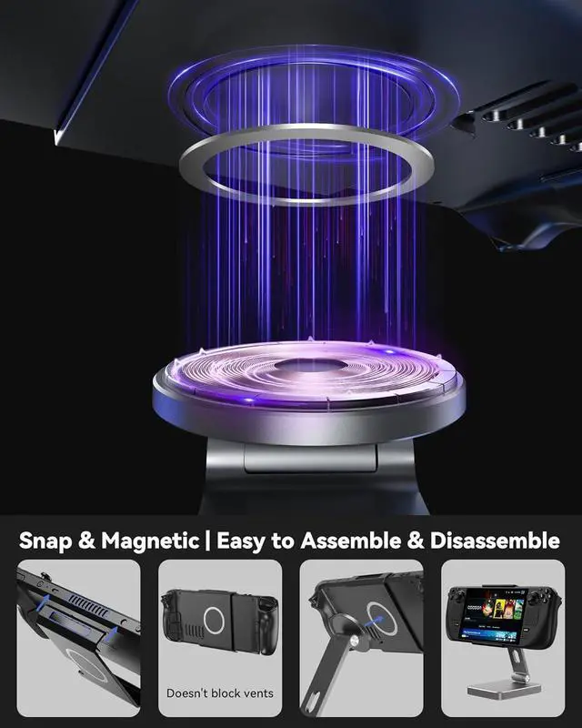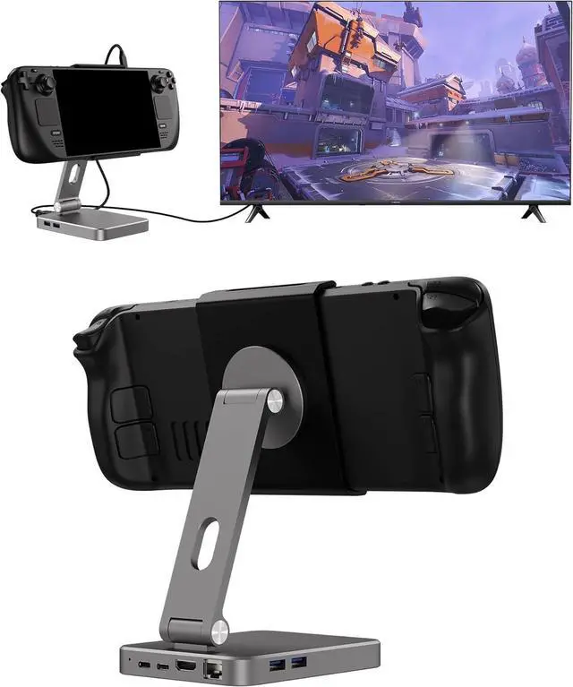 Antank Foldable Magnetic Stand Compatible with Steam Deck, Gigabit Ethernet, Portable Charging Stand Holder for Desk, TV Docking Station with 4K@120Hz HDMI Adapter/2 USB-A 3.0 Port for Steam Deck