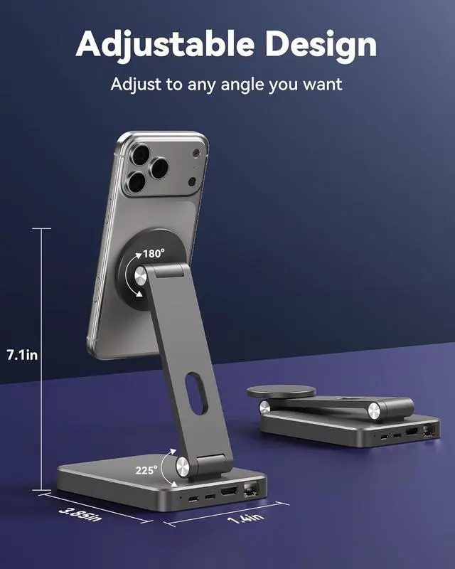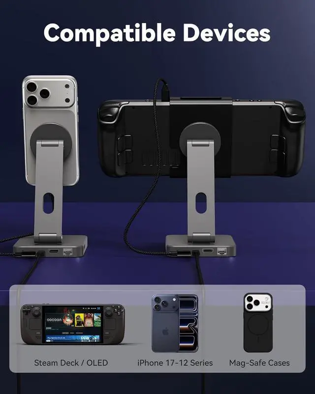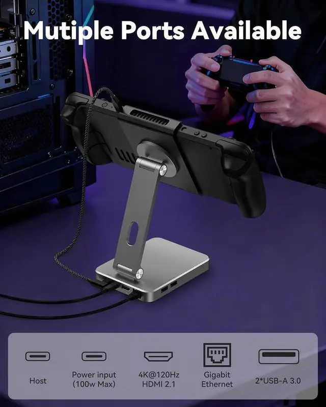 Antank Foldable Magnetic Stand Compatible with Steam Deck, Gigabit Ethernet, Portable Charging Stand holder for Desk, TV Docking Station with 4K@120Hz HDMI Adapter/2 USB-A 3.0 Port for Steam Deck