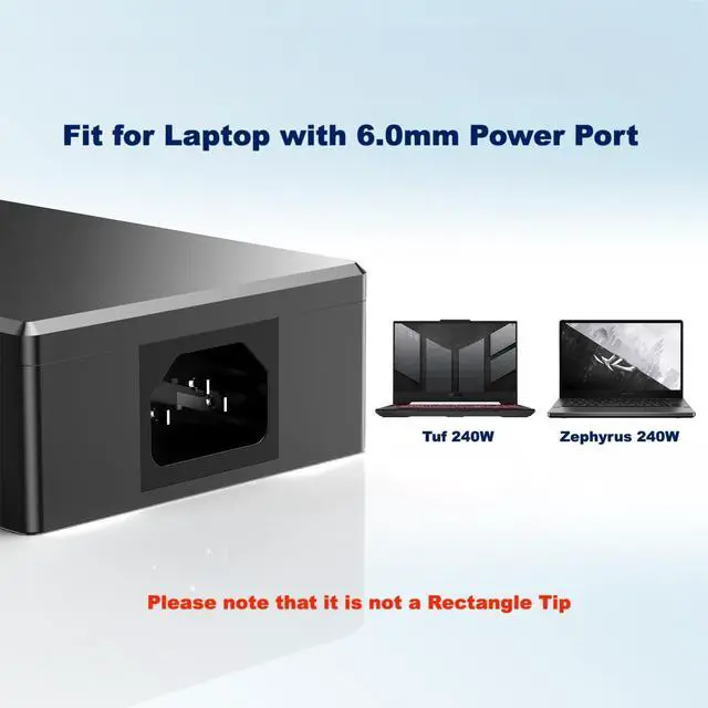 Wide Compatibility: Round connector (6.0x3.7mm) works with Zephyrus G14 GA402, G16 M16 GU603, S15 GX502, Flow X16 GV601, Tuf A15 A17 F15 F17, Vivobook Pro 16X 15X Strix Scar 15 17 G15 G17, ProArt StudioBook 15 16 17 (240W Model with Round power port) (2022-2023) Zephyrus G14 GA402NU GA402NV GA402NJ GA402XY GA402XZ GA402XI GA402XV GA402RK GA402RJ GA402RK; G16 GU603VI GU603VV GU603VU GU603ZI GU603ZV GU603ZU; S15 GX502LXS GX502LWS; S17 GX701LXS GX701LV GX701LWS; M16 GU603Z GU603ZX GU603ZE GU603ZM GU603ZW GU603HR GU603HM; Flow X16 GV601VV GV601VU GV601RM GV601RW GV601RE