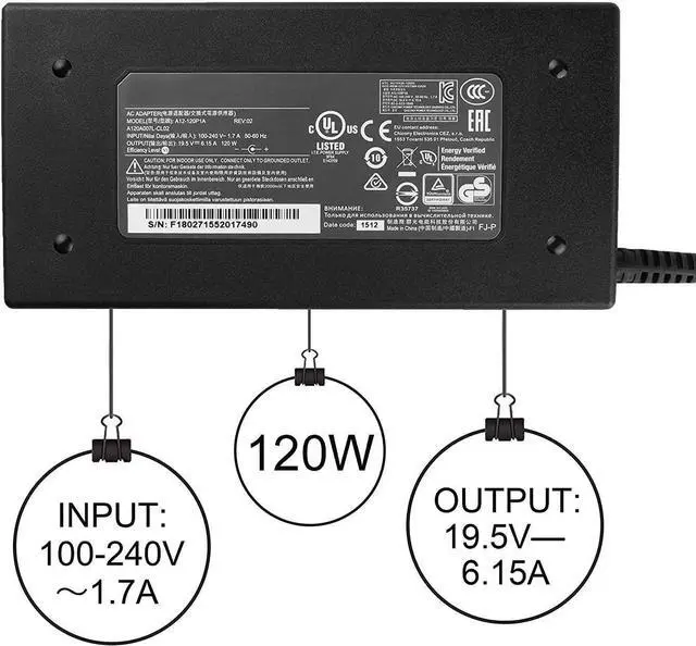 Works Well With Dell ADP-120MH D chicony A12-120P1A A15-120P1A 120W power adapter .Compatibility MSI Cyborg 15 A12VF A12VE A13VE 12VF-043US A12VE-046US A12VF-215US A13VE-218US Thin GF63 12HW 12UCX CreatorPro M15 A11UIS ...