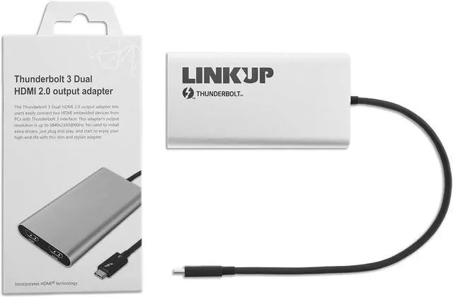 LINKUP Thunderbolt 3 HDMI adapter transfer up to 40 Gbps allowing you to connect two 8 million pixel 4K displays with snappy 60Hz refresh rates (4 times the pixels of 1080p).