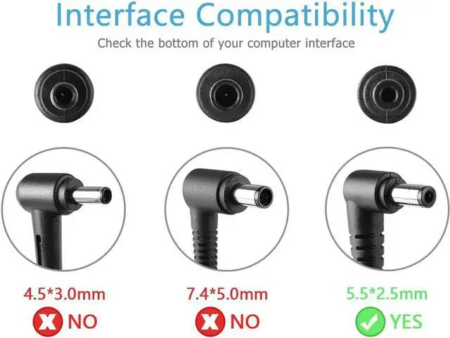 [Package includes]1 x AC Adapter&1 x US power cord(Tips: Before ordering, please check carefully whether your original adapter's output power is compatible, If the output power is the same, then it can be compatible your laptop!)