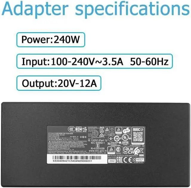 240W 20V 12A Charger Adapter Compatible withMSI Katana GF76 12UGS-087 12UGS-087 12UGS-053 12UGS-035 Katana GF76 12UGS 12UGS(MS-17L3) GF76 12UG 12UG-090 GF76 12UG-090 12UG-054 12UG-036 12UG MS-17L3 GF76 12UE 12UE-235 12UE-037 12UE-026 Sword 15 A12UE A12UE-605 A12UC A12UC-295 Pulse GL76 12UGK 12UGK-258 12UGK-256.