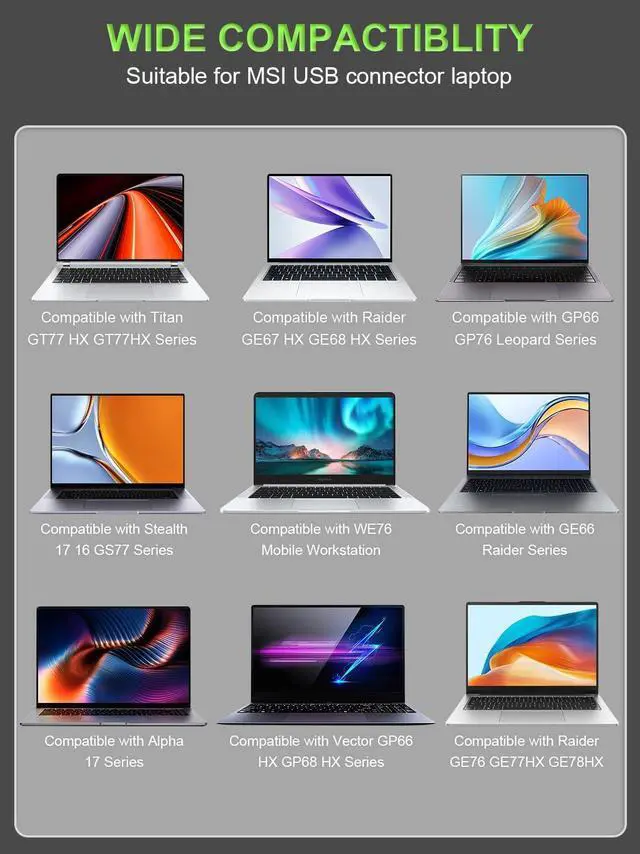 Compatible with Vector GP77 13V/ GP78HX 13V/ GP76 12U/ GP76HX 12U/ GP66 12U/ GP66HX 12U/ GP68HX 12V 13V/ Vector A16 HX A8W/ Vector 16 HX AI A2XW/ Vector 16 17 HX A13V A14V/ Vector 17 HX AI A2XW/ GP76 GP66 Leopard (Intel 10th 11th Gen)/ Titan GT77 12U/ GT77HX 13V/ Alpha 17 C7V/ WE76 (Intel 11th Gen)/ Creator Z16 Z17 HX Studio A13V B13V/ Creator Z16P B12U/ Creator Z17 A12U/ Creator A16 AI+ A3HV A3XV/ CreatorPro 16 AI Studio A1V/ CreatorPro Z17 X17 Z16P A12U A13V B12U/ CreatorPro Z16 Z17 HX Studio B13V A13V Laptops