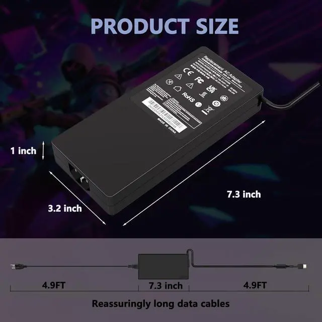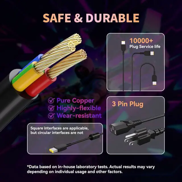 Speed & Safe Laptop Charger for Lenovo: Certified by RoHS, UL, and FCC, it ensures rapid, secure charging for your Legion pro laptop, letting you swiftly resume work or gaming
