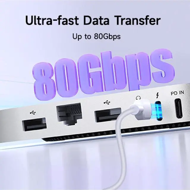 Superspeed Data Transfer Up to 80GbpsOur Mac mini M4 dock supports new technology with up to 80Gbps bandwidth for ultra-fast data transfer ideal for high-performance drives and HDDs. Note: Actual transfer speeds may vary depending on your host devices new version and system capabilities.2.5G Ethernet Port for Faster NetworkingEnjoy smoother online browsing and faster network speeds with the integrated 2.5G Ethernet port.Professional-Grade SD4.0 SlotDesigned for photographers, the SD4.0 card slot supports transfer speeds up to 300MB/s, enabling quick photo and video transfers with ease.