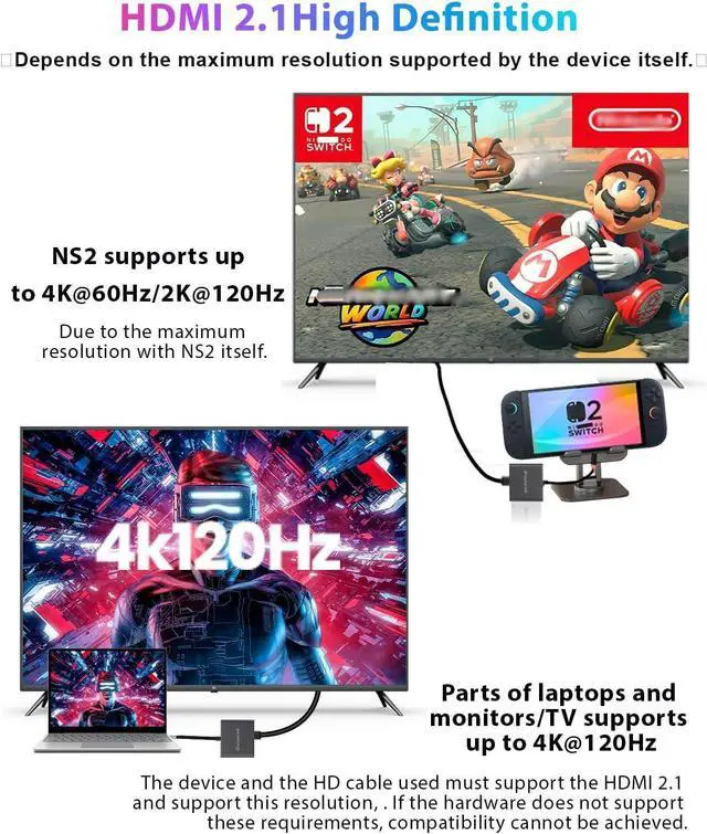 Switch 2 dock upgraded V21 for Nintendo Switch 2 Docking Station featuring an HDMI 2.1 port and compatible with the latest official firmware version 21.0. 0. no manual updates required/Plug-and-play support for V21simply use it on your newest console. Designed as a portable travel dock, it replaces bulky official docks. Whether at work or on the go, carry it anywhere and enjoy gaming anytime.