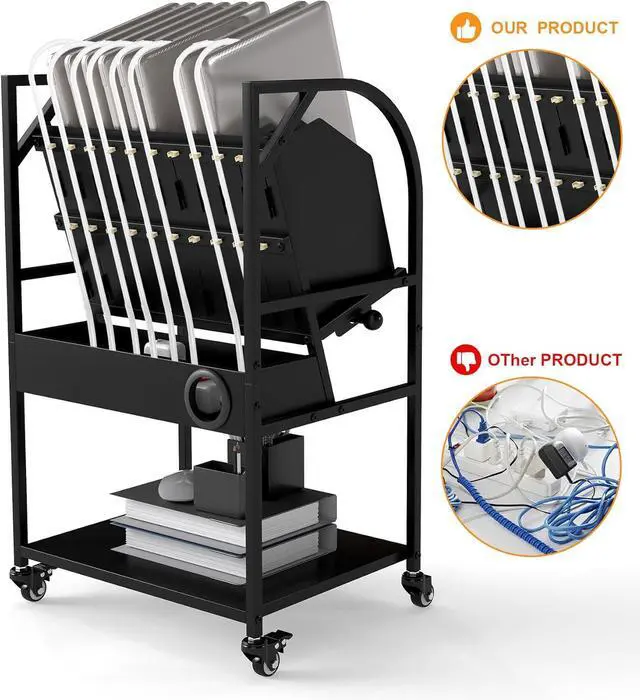 Durable ConstructionThis Laptop storage rack is made of heavy-duty steel frame, this chromebook charging station cart ensures reliable performance in schools, libraries, offices, and healthcare facilities, providing years of dependable device charging and storage