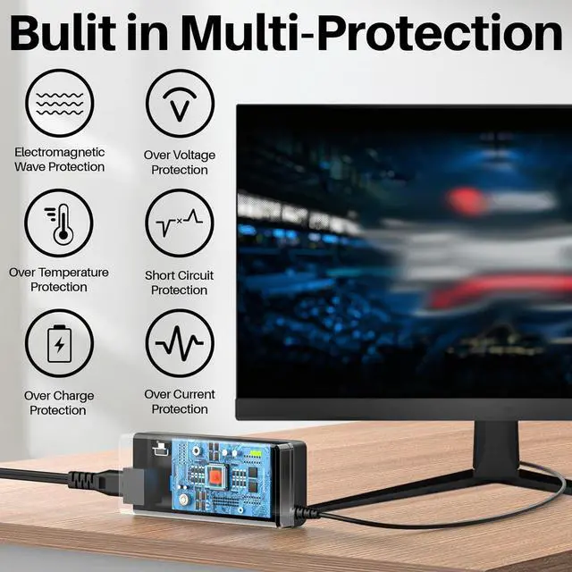 Reliability--AC-DC adapter for MSI curved monitor has been checked multiple times and UL Listed, the report reference id: E482416. OVP: Over Voltage output Protection. OCP: Over Current output Protection. SCP: Short Circuit output Protection