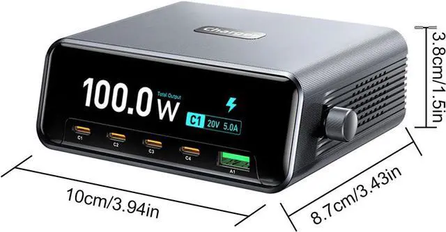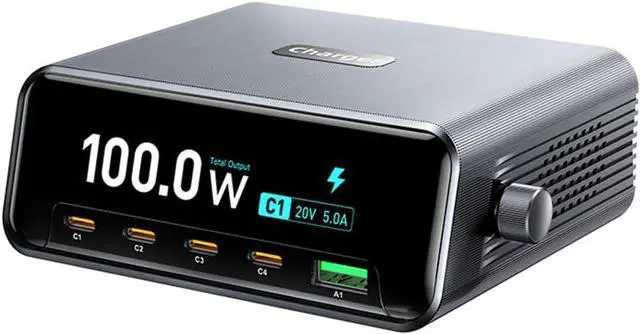 [Ultra Fast Charging] Equipped with advanced gan technology this 5 port charger delivers blazing fast charging speeds while maintaining a compact footprint. experience up to 20v 5a output through the type c ports perfect for power hungry devices like macbooks and gaming laptops. the intelligent power distribution system automatically adjusts output to maximize charging speed for each connected device.