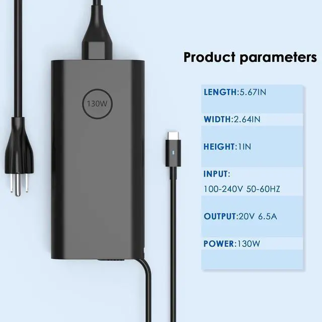 130w usb c charger SpecificationsInput: AC 100V-240V, 50-60Hz; Output: 20V 6.5A 130W(100W 90W); Connector type:USB C