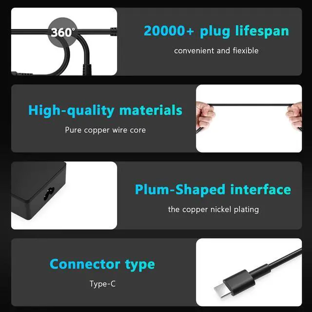 Specification: Input:AC 100-240V 50-60Hz; Output:5V-3A 9V-3A 15V-3A 20V-5A 100W Max(15W/27W/45W/65/100W). Connector Size:USB Type C Power Adapter