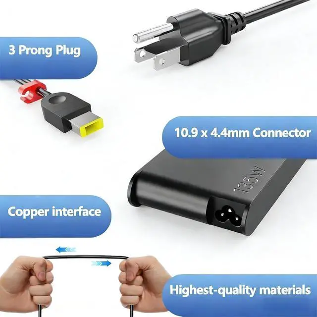 High Power Output: 135W (20V 6.75A) for fast, stable charging of Thinkpad laptops