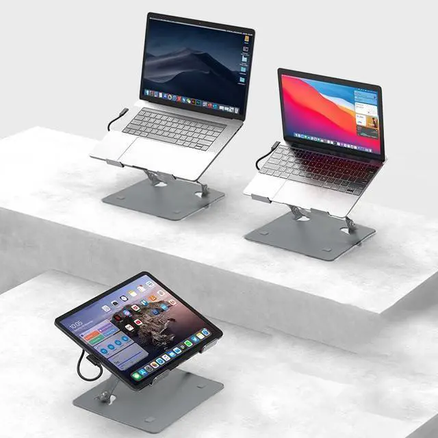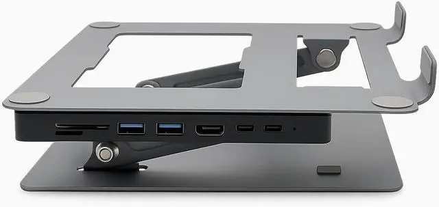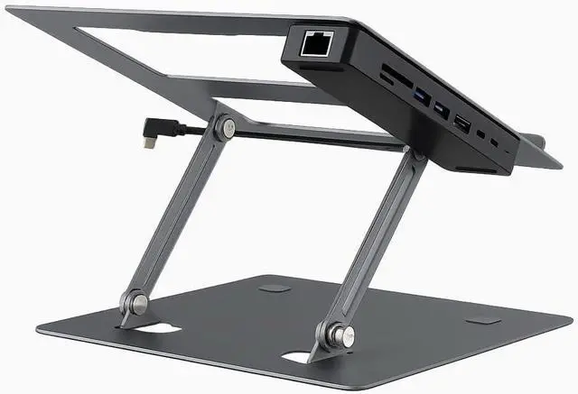 Solid and Protective StandCrafted from premium aluminum alloy, this docking station stand effortlessly supports laptops up to 13 lbs without any bounce or wobble. Non-slip rubber feet ensure stability on any surface, while the tray's raised front lips(retractable) securely hold the laptop in place, preventing scratches. Ideal for a secure and stable workspace setup.