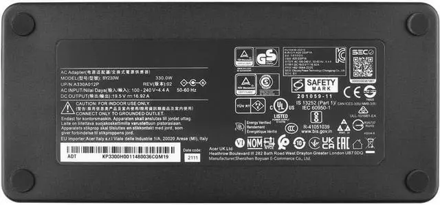 Product Specifications330W Charger AC adapter, Input: AC 100-240v, 50-60Hz, Output: 19.5V 16.9A ,Connector Size: 5.5mm*2.5mm (Please check whether the interface is the same as the original charger interface)