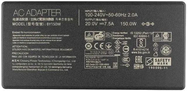 Product Specifications150W Charger AC adapter, Input: AC 100-240v, 50-60Hz, Output: 20V 7.5A ,Connector Size: 4.5mm*3.0mm (Please check whether the interface is the same as the original charger interface)