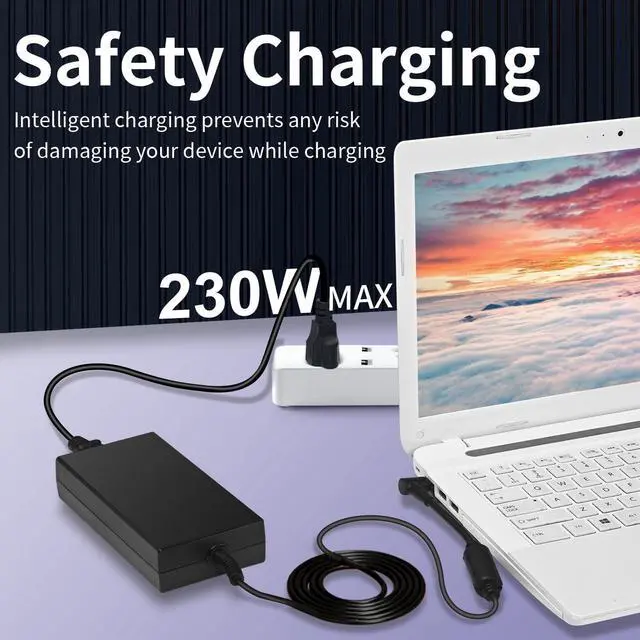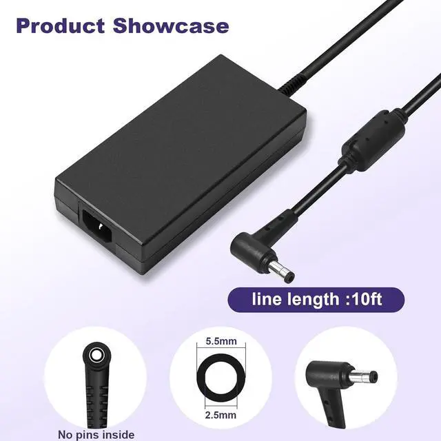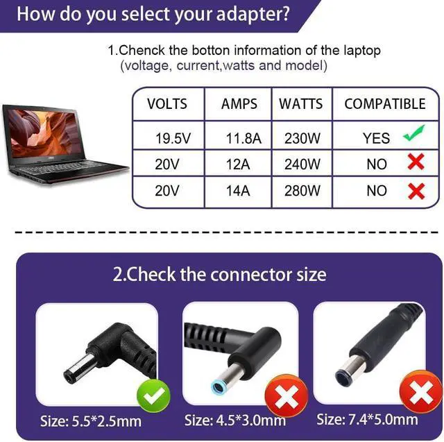 Product Specifications PAEBAI+ 230W Laptop Charger Input: 100-240V 50-60Hz; Output: 19.5V 11.8A 230W (19.5V 9.23A also compatible); Connector Size: 5.5*2.5mm tip.