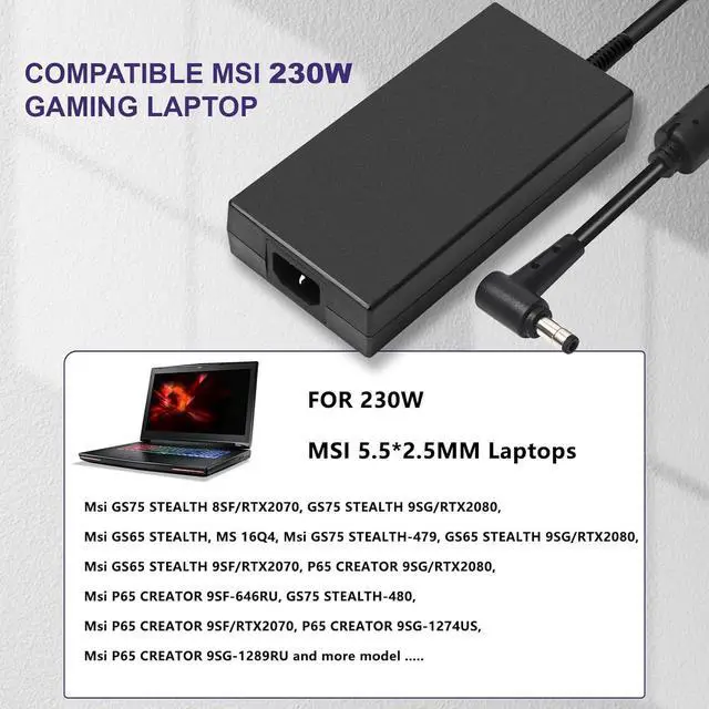Compatible With MSI P/NWith for MSI A17-230P1A A230A012L A12-230P1A, for Delta ADP-230EB T ADP-230GB D ADP-230CB B, for 957-17G11P-101,957-17811P-104.