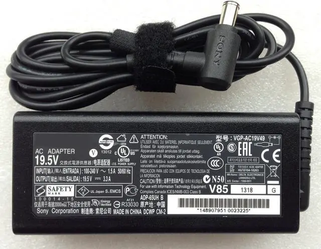 Input:100-240V 50-60Hz (for worldwide use),Brand:replacement for Sony, Output:19.5V3.3A,Power:64W,DC pin sizes:6.5X4.4mm,pls 100% make sure the output and DC pin sizes is suitable before you purchase.