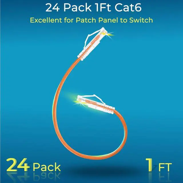 • 24 Pack24-pack of CAT6a patch cables with short length is excellent solution for connecting patch panel to switch and other various devices in high performance. Available in various colors and length of cable patch cords.