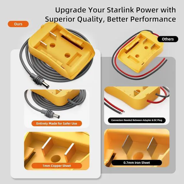 High Quality Material: Crafted from premium ABS and pure copper materials, this Starlink Mini Dewalt Charger Adapter ensures a durable, stable, and safe power supply to keep your Starlink Mini dish antenna performing optimally.