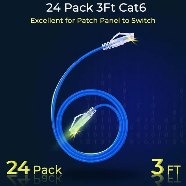 24 Pack24-pack of CAT6a patch cables with short length is excellent solution for connecting patch panel to switch and other various devices in high performance. Available in various colors and length of cable patch cords.