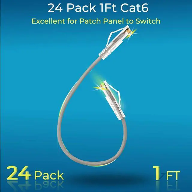 24 Pack24-pack of CAT6a patch cables with short length is excellent solution for connecting patch panel to switch and other various devices in high performance. Available in various colors and length of cable patch cords.