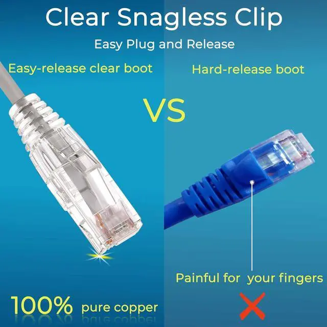 Clear Snagless ClipClear Snagless Clip of cat 6 ethernet cable 1 ft black make it easy to see the switch port and light. Also, easy release from port and save time for patching installation.