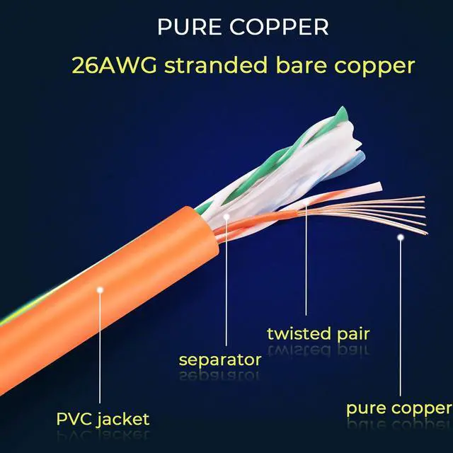 Save TimeThis premium ethernet cable save hours of time and hassle of cutting and crimping custom length cables for patch panels. Don't waste time on hand-making rj45 Internet cable.