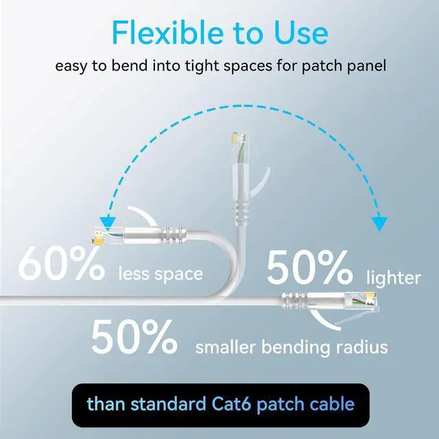 Utral Slim: Cat6A ethernet patch cable stands out for its slim design. Cat6 patch cables is ideal for routing in tight spaces, easy to trace specific cables and much better airflow, compaired with regular patch cables cat6.