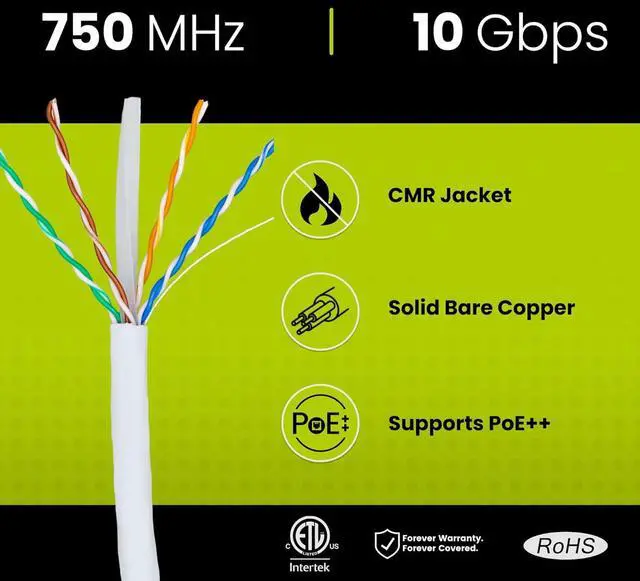 [Extreme Performance] Supports 1 Gigabit & 10 Gigabit Ethernet up to 328 ft. Bandwidth tested up to 750 MHz for demanding applications like Full HD & 4K streaming, data servers, PC gaming, and business networking.