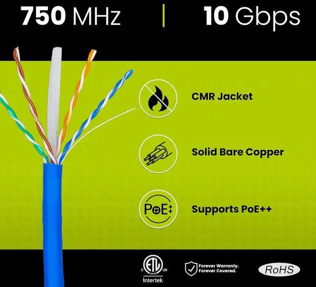[Extreme Performance] Supports 1 Gigabit & 10 Gigabit Ethernet up to 328 ft. Bandwidth tested up to 750 MHz for demanding applications like Full HD & 4K streaming, data servers, PC gaming, and business networking.