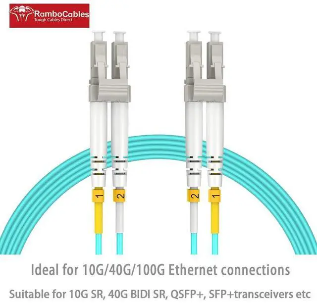 Wide UsageOM4 MMF is the preferred fiber specification for 40G Ethernet connections. OM4 LC to LC Multimode Duplex Fiber patch cords is specially designed for connecting 10G SR, 40G BIDI SR, QSFP+, SFP+ transceivers etc, ideal for 10G/40G/100G Ethernet connections. RamboCables OM4 LC-LC optic fiber patch cables saving more space for your high density cabling in data centers, enterprise networks, telecom room and any places patch cables are needed.