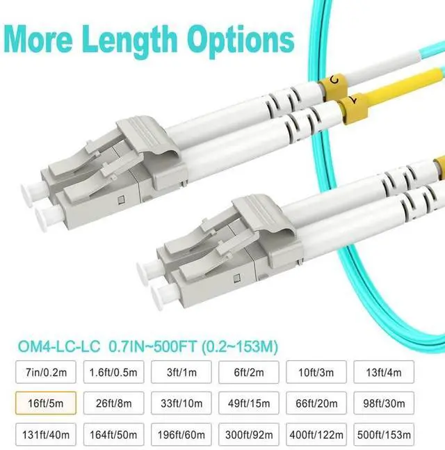5m 10pack OM4 Fiber Optic Patch Cable RamboCables OM4 LC to LC fiber patch cable multimode duplex has a 50/125m high rated fiber cladding, 850/1300nm Wavelength, 2.0mm fiber cable diameter and environmentally friendly LSZH fiber jacket. OM4 multimode LC to LC fiber patch cables ensure a more stable and efficient network for you.
