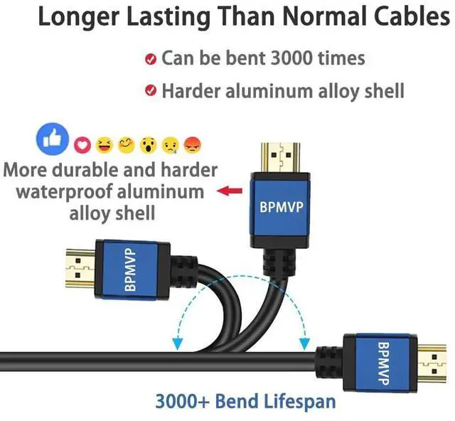 High quality : With durable antioxidant alloy casing, 24K gold plated connectors, Oxygen Free copper conductor, and triple shield inside for anti-interference, which help to maximize the service life of the HDMI cable and suitable for in wall installation.