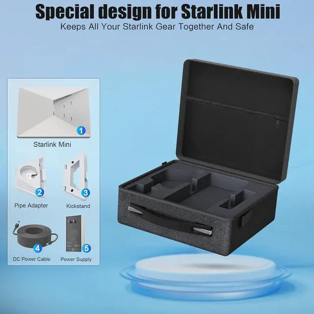 [Large Capacity] Waterproof Hard Case fits Starlink Mini Dish, Starlink Wall Plug Power Supply, DC Power Cable, Ethernet Cable, Both the Kickstand Mount and the Pipe Adapter Mount, Small Extra Accessory Pocket.