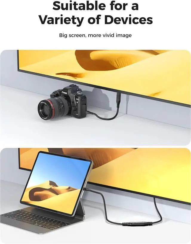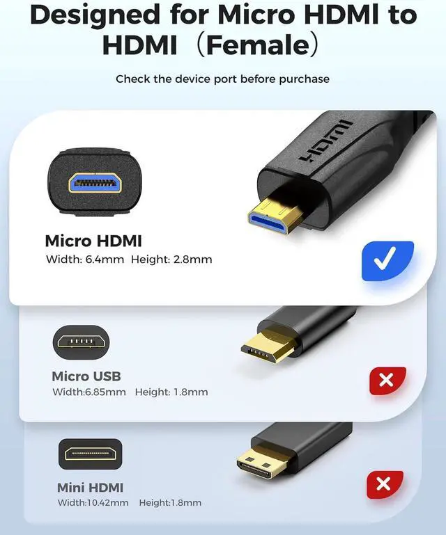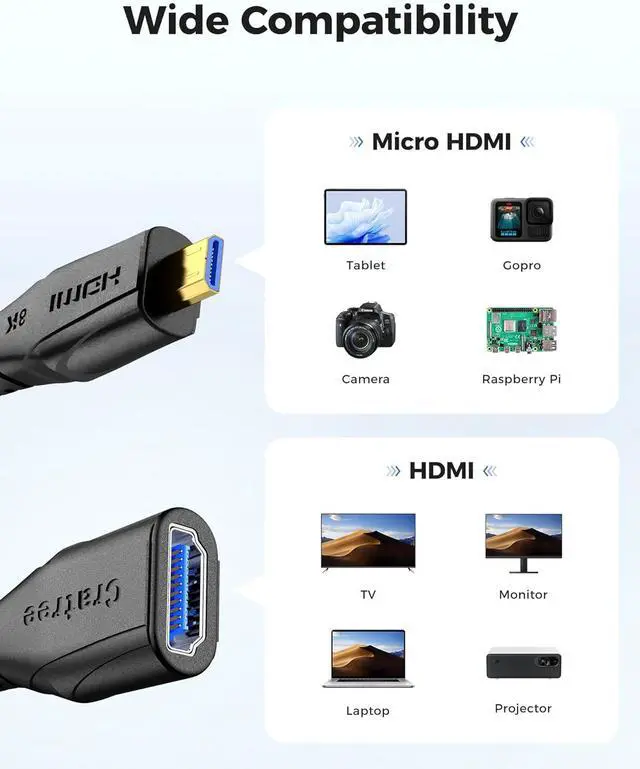 CratreeThis micro HDMI to HDMI adapter supports 48Gbps 4K@60Hz 4:4: 4 HDR, helps you stream audio and video from a camera, laptop or tablet with a micro HDMI port to your HDTV/projector/monitor with an HDMI port.