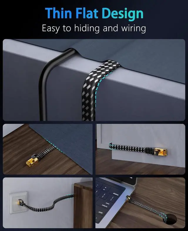 Flat Cat 8 Ethernet Cable : Cat8 rj45 cables adopts a flat and thin design to avoid tangled cords and save space