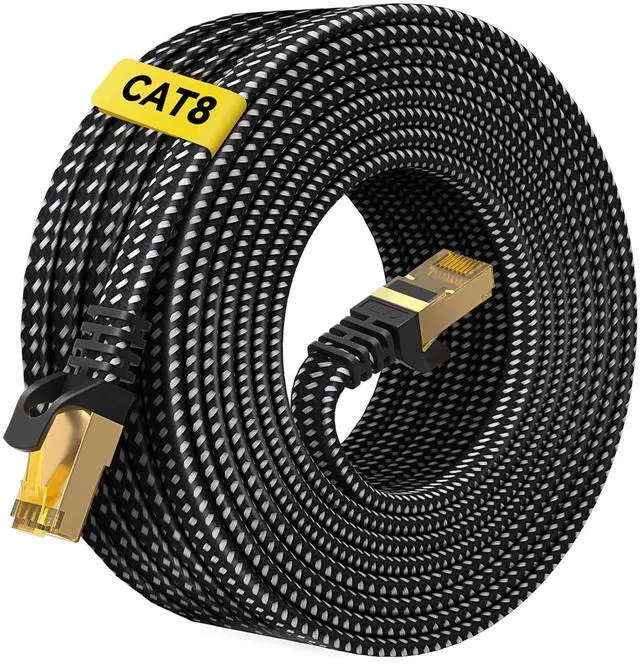 Braided Design : Double braided nylon exterior make Cat8 gigabit ethernet cable more sturdy