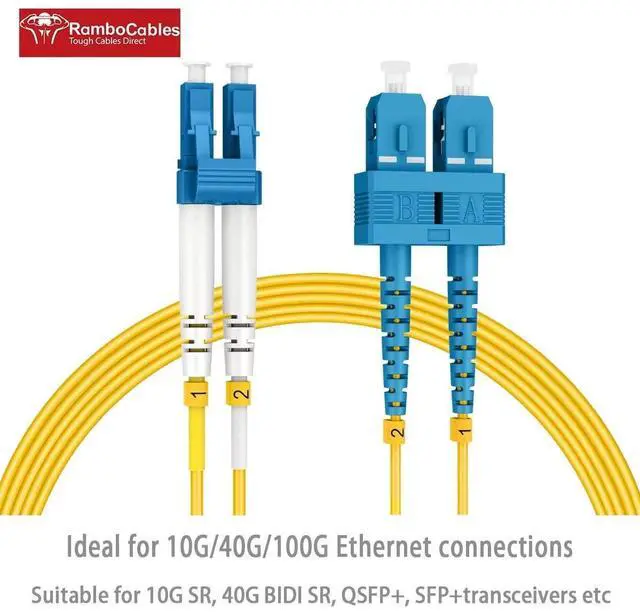 [RamboCables Tough Cable Direct] RamboCables OS2 sc to lc fiber patch cable meets industry standards for efficient network transmission. It ensures reliable and efficient network connectivity for telecommunications and other applications.