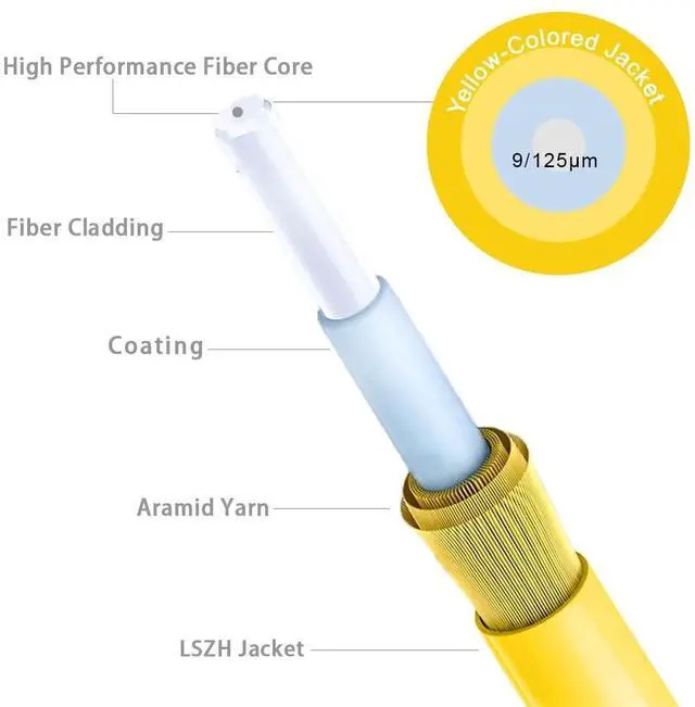 [Max Transmission Distance] This OS2 Single Mode Optic Fiber Cable can transmit data for up to 10km at 1310nm, or up to 40km at 1550nm. Bandwidth at 1310nm-1550nm 0.36 dB/km-0.22 dB/km, can operate under temperature -20~70°C.