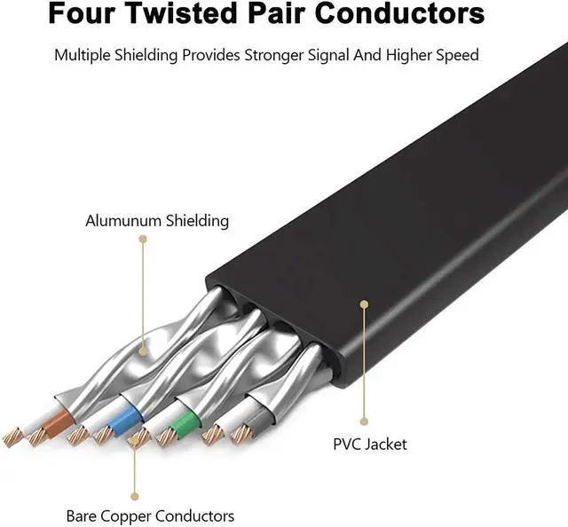 Weatherproof & UV ResistantJadaol in wall network cables are made of 4 shielded Foiled Twisted Pair of copper wires and UV-resistant PVC jacket with a 50 micron gold plated contact pins RJ45 connector on each end makes it more durable, flexible, waterproof, anti-corrosion, anti-aging, anti-UV, toughness for both outdoor & indoor use.