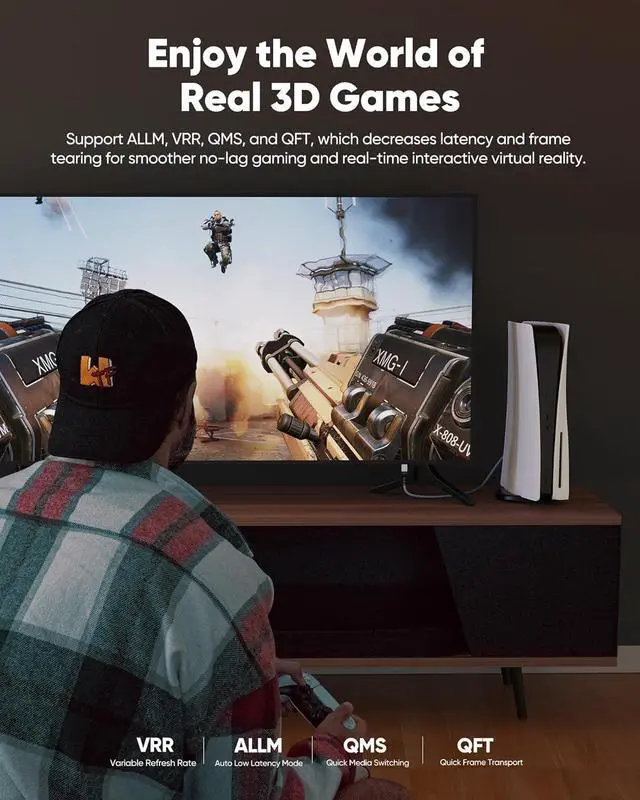 For Game Enthusiasts: This 8K Ultra High Speed HDMI Cable can achieve a super smooth picture of 4K@120HZ. Its latest game mode supports variable refresh rate, maximizes the value of the graphics card and CPU to obtain a smoother and more detailed picture.