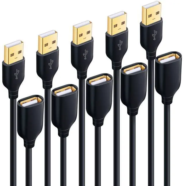 5-Pack 10ft USB 2.0 Extension Cables: 10 Feet/3M USB extender cable allows you to extend the cable connection between Computer (Mac/PC)/ Windows tablet and Most of USB-enabled device, such as keyboard, mouse, iPhone, camera, printer, external hard drive, USB Flash Drive, card reader, VoIP phone, LED lights neon signs and more.