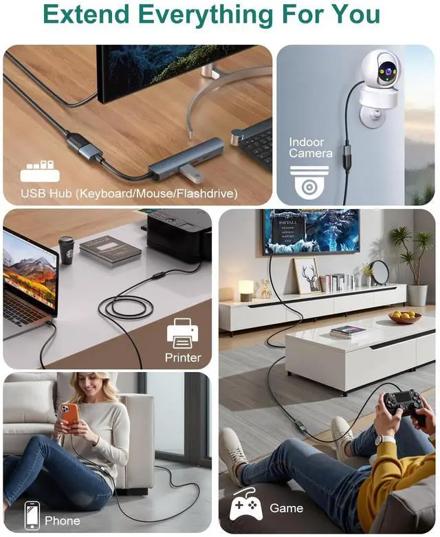 What U Get: A set of 5Pcs 10ft USB extension cables will be included in the package.