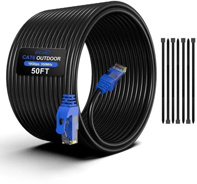 Rugged and Durable: Our cat 6 outdoor cable is 24AWG with 4 pairs conductors and RJ45. It uses 550Mhz to transfer data up to 10Gbps, to provide you with the most stable signal and lower delay. Of course it works perfectly indoors