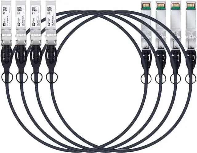 10Gb SFP+ Cable: 10G SFP+ to SFP+ DAC Twinax cable assembly support 10 Gbps data rate, 10GBASE-CU Passive, 1.5 meter (5 ft), 30 AWG; DAC Length includes 2 SFP+ connectors; 4 Pack