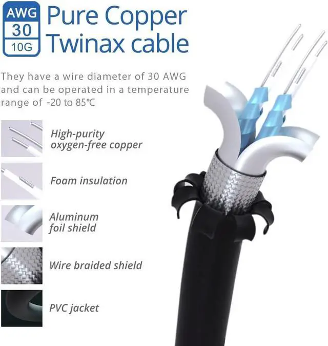 Efficient Design: 10Gb SFP+ DAC cable is a good alternative to link 10G SFP+ ports, with low-cost, low power consumption and low latency; All products are passed by TDR & VNA tests in our Signal Integrity Lab