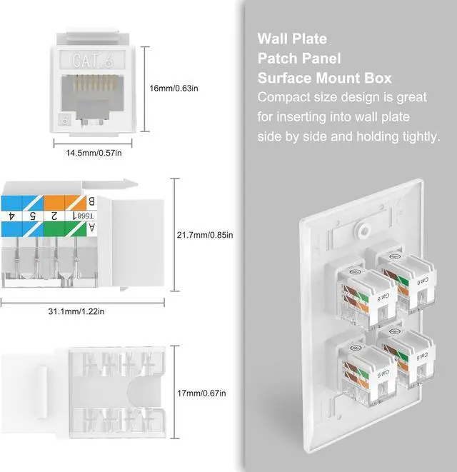 VCE rj45 keystone jacks PoE can be used for wiring your home, stabilizing connectors, and they are easy to wire and punch down. Compatible with patch panels or wall plates with standard keystone ports, the RJ45 couplers can snap right into the face plates and hold tightly.